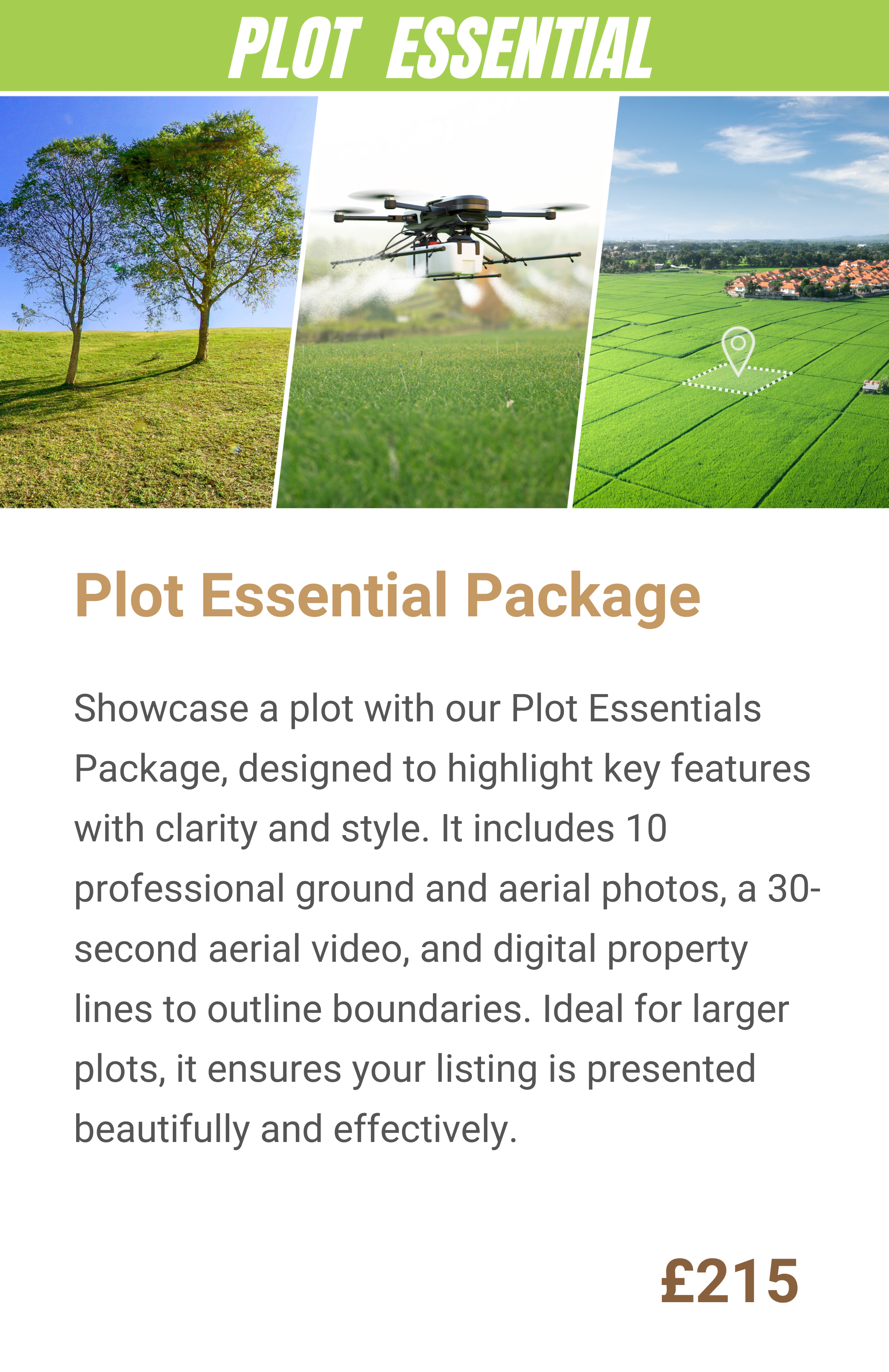 Present each plot at its best with cost-effective marketing designed to attract buyers and developers. Combining striking ground and aerial visuals, our plot services create standout listings that boost interest, build confidence, and help land sell faster.